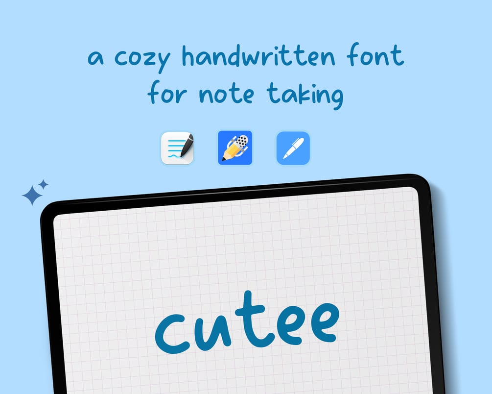 Cutee, is the perfect handwritten font for all your digital note-taking needs! With its charming and playful style, Cutee adds a personal touch to any project.
